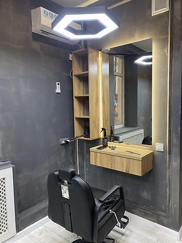 - Просторное, современное рабочее место: гидравлические кресла, мойки, индивидуальные посты с зеркалами, профессиональное освещение и хранение инструментов.