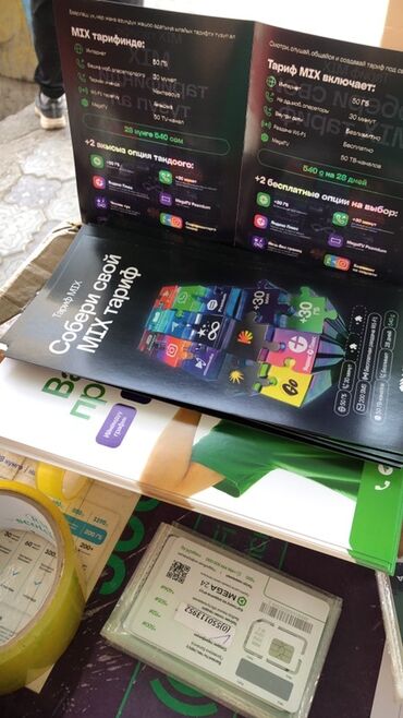 - MIX: 50 ГБ, 30 минут на другие операторы, безлимит внутри сети, бесплатная раздача Wi‑Fi, 50 ТВ‑каналов MegaTV. Стоимость: 540 с за 28 дней. Возможность выбрать 2 бесплатные опции (например, +30 ГБ, +30 минут, Яндекс Плюс, MegaTV Premium, «Чексиз түн», соцсети без лимита, Etnomedia, Megogo, Wink, Start)