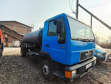 - Шасси на фото: классический ЗИЛ (синяя кабина, стальная цилиндрическая цистерна) и MAN 8.163 (синяя кабина, черная цистерна).