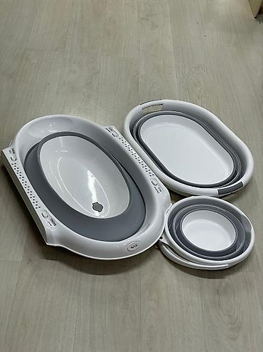 Находится в Кара Балте. Б/У Складной комплект для купания INING BABY Foldable Bath-Tub Set. Что включено: - Складная ванночка для младенца овальной формы. - Складной таз/ведёрко. - Складной квад...