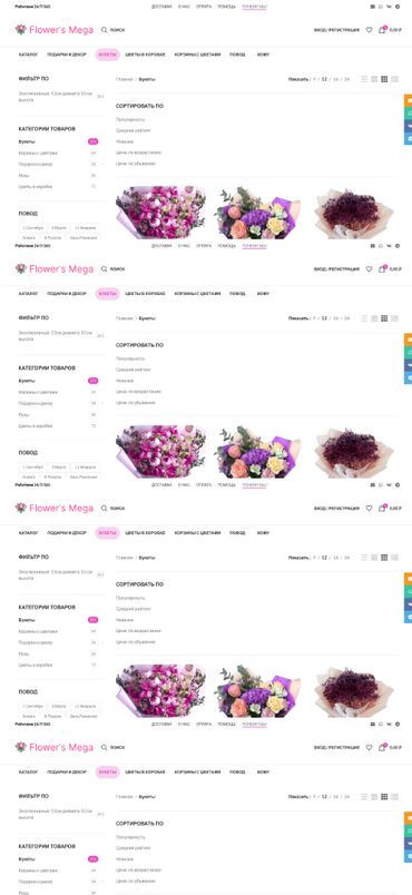 Гибкость заказа: Выбор букета, настройка количества/типа цветов.