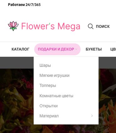 Смена ассортимента: Устали от цветов? Переключите на: подарки, сладости, игрушки, косметику, товары для дома, кофе, пиццу, фермерские продукты, зоотовары, сувениры – любые товары с местными поставщиками. Система универсальна!