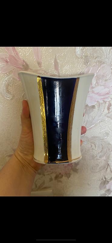 Керамическая ваза с узким горлом и расширенным основанием. -