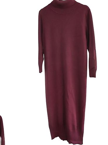 Вязаные платья миди 1) Бордовое однотонное - Фасон: прямое, миди -