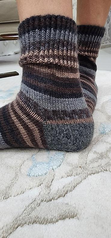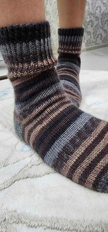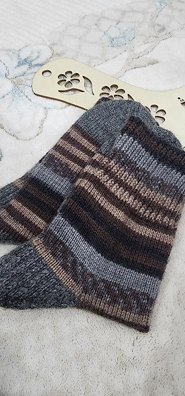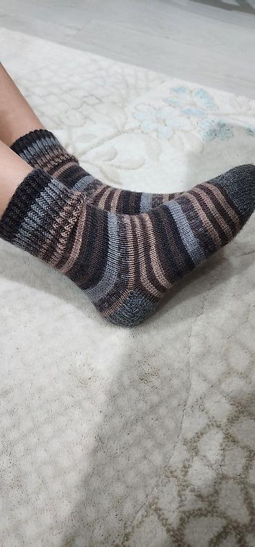 Вязаные шерстяные носки ручной работы.