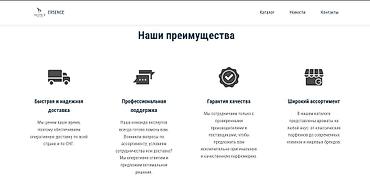 - Пример реализованного проекта на скриншотах: главная с оффером, преимущества, каталог, корзина.