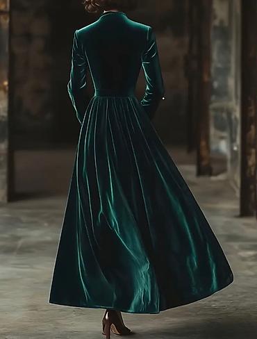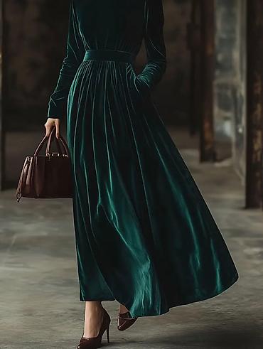 Вечернее бархатное платье макси изумрудного цвета.
