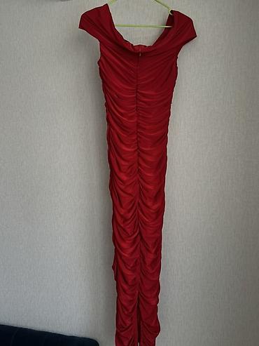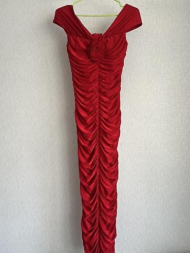 Вечернее длинное платье насыщенно‑красного цвета.