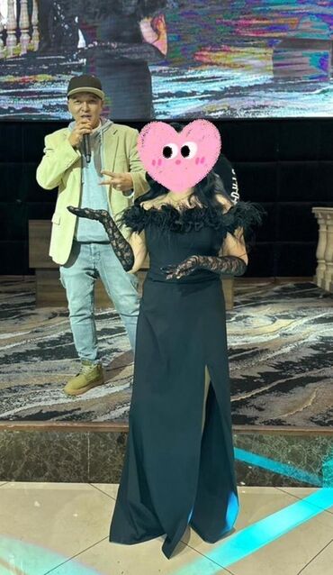 Элегантное черное платье с блестящим верхом. - Силуэт: расклешенный низ длины миди. - Верх: кружевная накидка-болеро с вышивкой и плотной россыпью сияющих страз по переду и сзади. - Рукава: 3/4 и...