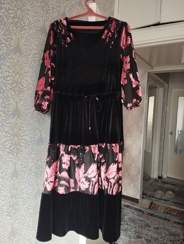 Продам платье турецкое покупала за 11000сом продам за 6000сом.Отдевала только 1 раз. На резинке подходит для 50, 52, 54 размер.