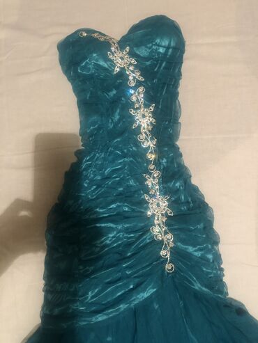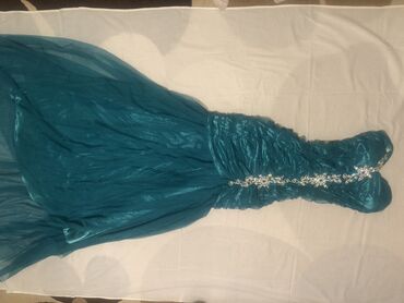 Турецкое, вечернее платье со шлейфом. Размер 44-48, на рост 170-180, цвет - бирюза.