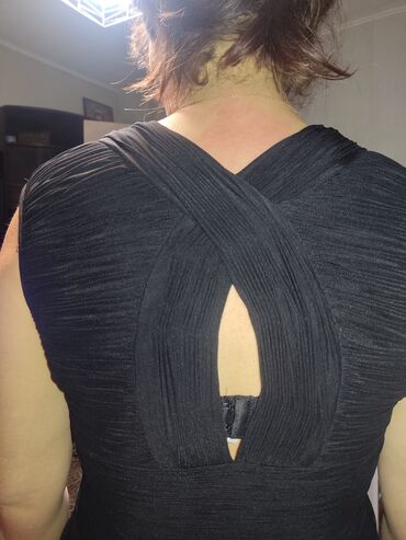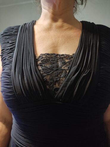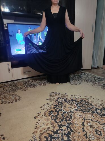 Элегантное черное платье с блестящим верхом. - Силуэт: расклешенный низ длины миди. - Верх: кружевная накидка-болеро с вышивкой и плотной россыпью сияющих страз по переду и сзади. - Рукава: 3/4 и...