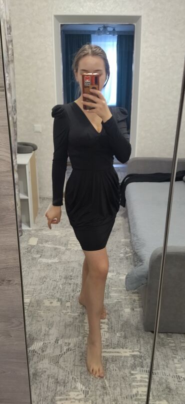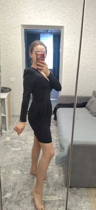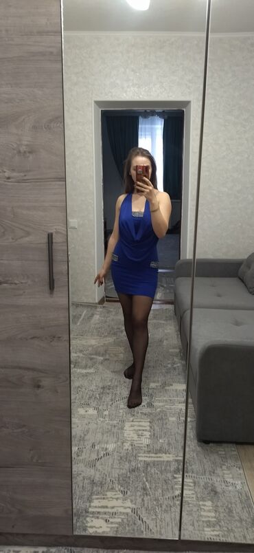 Вечернее платье, Короткая модель, Атлас, Без рукавов, S