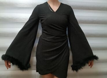 Вечернее платье, А-силуэт, Короткая модель, С рукавами, Камни, M