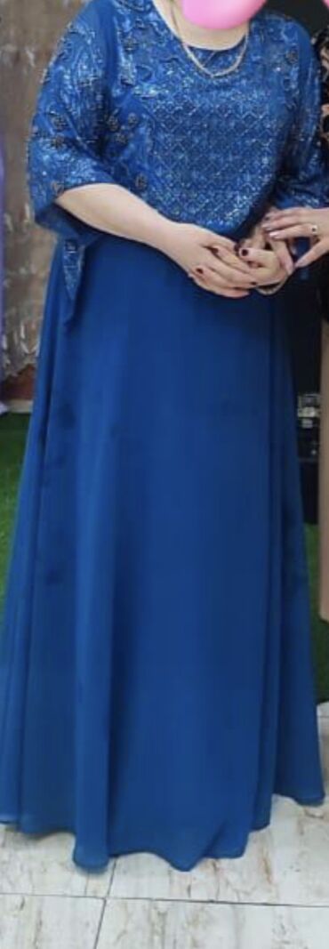 КамниСтразыСинее вечернее платье с длинными рукавами и декоративной вышивкой бисером. Верхняя часть платья украшена сложным узором из бисера, который придает ему элегантный и праздничный вид. Легкая, струящаяся юбка обеспечивает комфорт и свободу движений, что делает его подходящим для различных торжественных мероприятий. Производство Турция ! Брали дороже