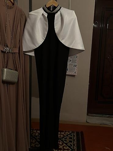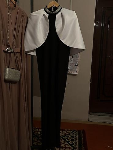 Вечернее платье в полу, черное, с белым накидным болеро и