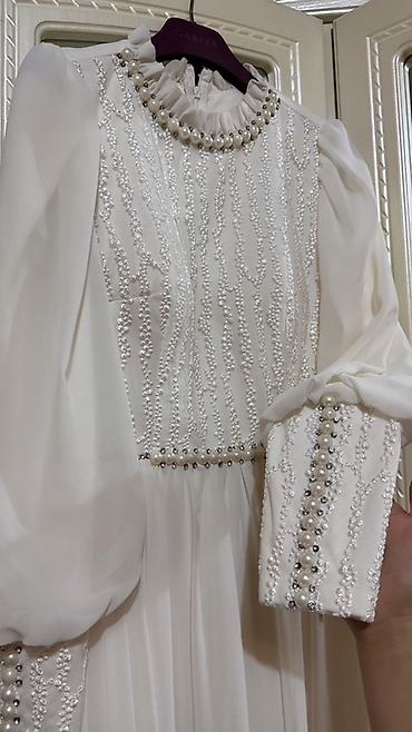 - Отделка: жемчужные и кристальные бусины по горловине, талии и манжетам