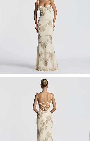 • кремовое с нежным бежевым цветочным узором по всему полотну и открытой спиной со шнуровкой;