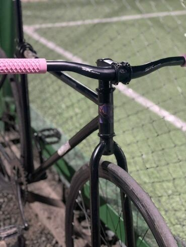 - Руль: короткий райзер SК с выносом под 31.8, установлены розовые грипсы.