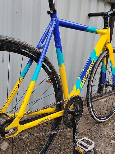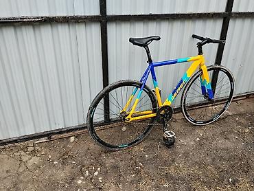 Городской велосипед single speed / фикс - Рама: стальная, классическая геометрия, размер ориентировочно M (по фото — горизонтальная верхняя труба, прямая посадка). - Трансмиссия: одинарная звезда ...