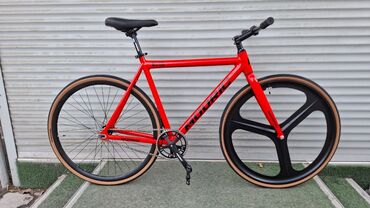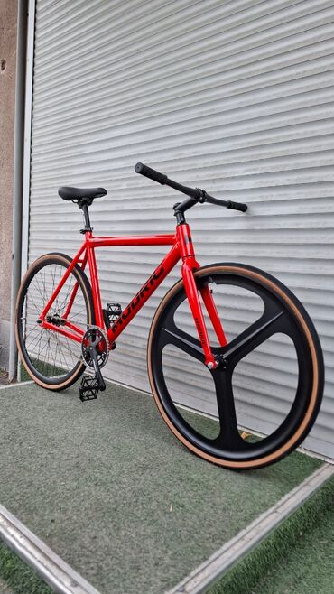 Яркая красная окраска с крупными логотипами MODRIC. Лёгкий и быстрый городской велосипед для трека, фикс-стайла и ежедневных поездок.