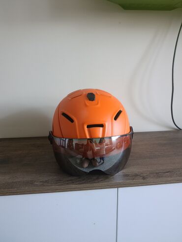 Велошлем MOON с визором, оранжевый. - Интегрированный затемнённый