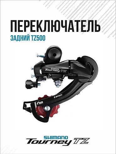 - Задний переключатель Shimano Tourney TZ (серия TZ500), совместим с 6-скоростными кассетами/трещотками. Конструкция с длинной лапкой обеспечивает стабильное натяжение цепи и четкое переключение на городских и прогулочных велосипедах.
