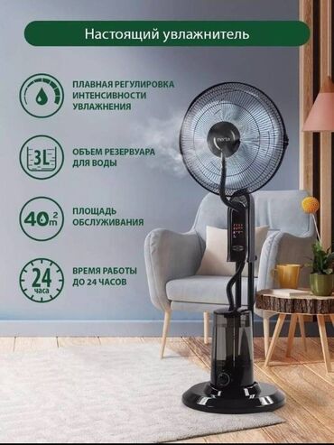 Вентилятор также оснащен водяным баком ёмкостью 3,2 литра, что позволяет продолжительное время использовать увлажнитель воздуха без необходимости постоянной дозаправки. Потребление воды составляет 1-2 л/ч, обеспечивая эффективное увлажнение и комфортную влажность воздуха.