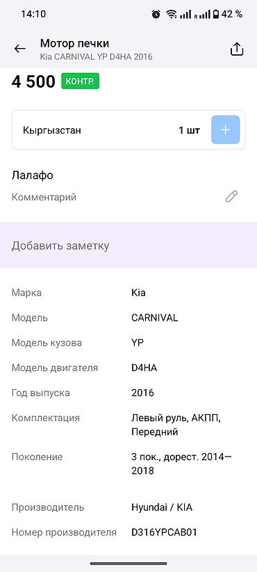 Вентилятор Kia