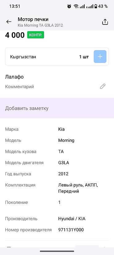 Вентилятор Kia