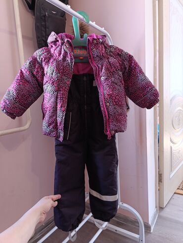 Детский зимний комбинезон COOl, размер 110. - Цвет: ярко‑розовый верх, черные низы. - Теплый капюшон. - Центральная молния по грудке для удобного одевания. - Два боковых кармана на молнии. - Внутр...