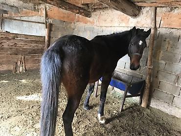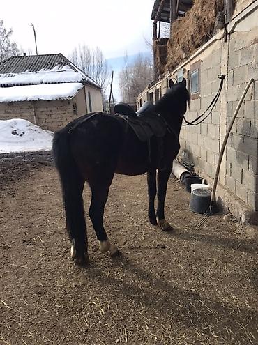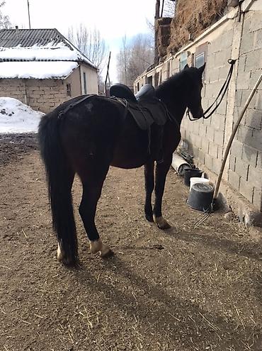 Лошадь верховая, темной масти с белыми отметинами на ногах. На фото с седлом и уздечкой — подходит для прогулок и легкой выездки. Крепкая спина, широкая грудь, ровные ноги, хороший хвост и грива. Спокойно стоит на привязи у конюшни, аккуратно принимает амуницию. Уверенный шаг, мягкая рысь, удобная посадка в седле. Подойдет для начинающих и любителей: прогулки по полям и лесу, легкие тренировки, хозяйственные выезды.