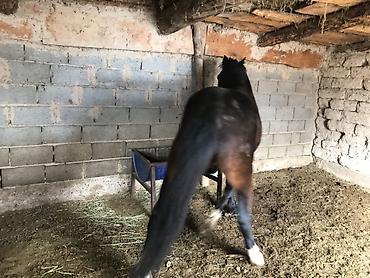 - Масть: вороной/темно-гнедой с белыми чулками