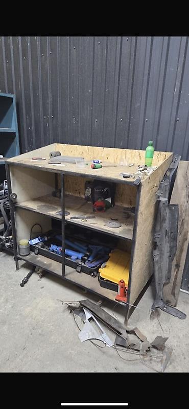 Верстак и тумба для мастерской из ЮСБ и металла самодельная