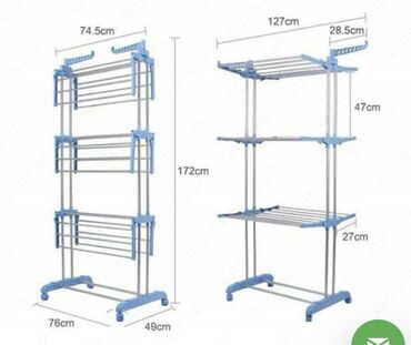 3 уровневая напольная сушилка для белья. Изготовлена из очень прочных материалов, благодаря складным полкам она занимает значительно меньше места при хранении.Конструкция очень стабильная и имеет стопорные штифты для удобной регулировки сушилки. Сушилка также может использоваться без колес, что не влияет на стабильность конструкции.