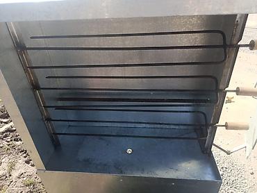 - Конструкция вертикального типа: шампуры располагаются между двумя ТЭН-подобными газовыми горелками/нагревателями, жир стекает вниз, не капая на огонь.