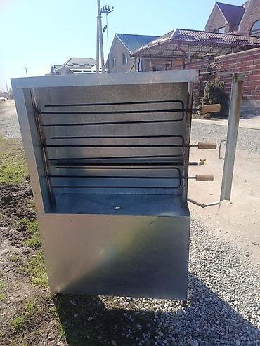 - Корпус из оцинкованного металла с дверцей и ручкой, есть отбойники/упоры для фиксации шампуров.