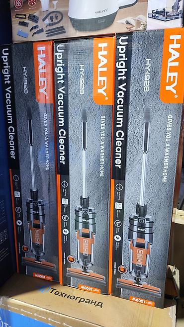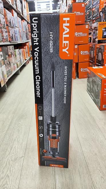 В комплекте на фото: моторный блок с кабелем, контейнер-циклон, металлическая трубка-удлинитель, напольная щетка, щелевая насадка, оригинальная коробка. Модель: Upright Vacuum Cleaner HALEY HY-1928.