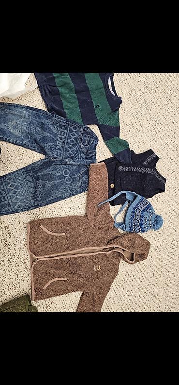 Набор детской одежды для мальчика, тёплый и повседневный размер 86 от Zara В комплект входят: - Стёганая куртка тёмно‑синего цвета со стойкой без капюшона, на кнопках спереди. Фигурная простёжка, ...