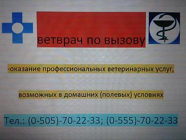 Ветеринар на выезд - оказание профессиональных и качественных ветеринарных услуг на дому. -выезд по городу Бишкек и возможно за его пределами; -клиническая диагностика и прогноз заболеваний; -комп...