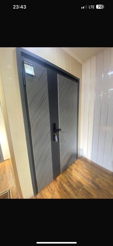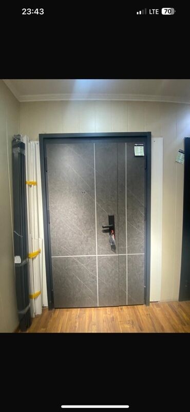 Входная металлическая дверь с порошковым покрытием. Имеется глазок и два замка с ручками. Подойдет для установки в квартиру, дом или офис, обеспечивая надежную защиту и звукоизоляцию.