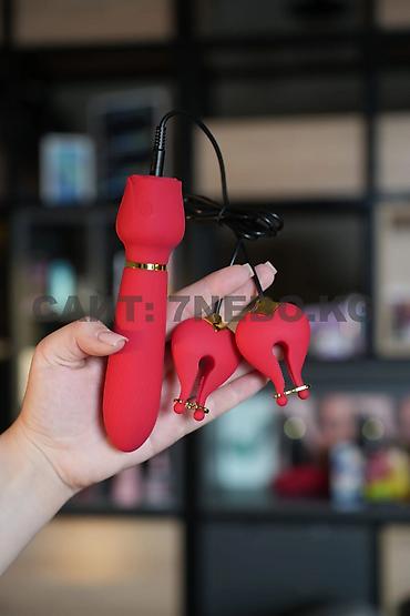 Роскошный интимный аксессуар для самых искушенных любителей секс-игрушек. В комплект входят вибромассажер в виде прекрасной розы и два нежных бутона – зажима для сосков, которые соединены между собой проводом.