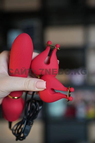 Вибромассажер с зажимами для сосков из премиум силикона цвет красный