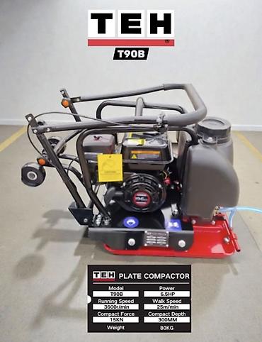 • TEH T90B — мощность 6.5 HP, частота вращения 3600 об/мин, скорость передвижения 25 м/мин, уплотняющее усилие 15 кН, глубина уплотнения до 300 мм, масса 80 кг. Оснащена баком для воды для работы по асфальту и брусчатке, транспортировочными колёсами и защитной рамой.