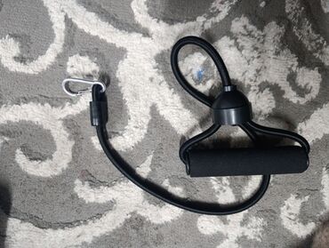 - В комплекте эластичный тяговый шнур-эспандер с мягкой поролоновой рукояткой, карабином для крепления к платформе — для проработки рук, плеч и спины во время вибротренировки.