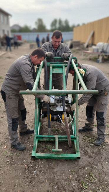 - Электропривод с вибратором (электродвигатель снизу, ременный/эксцентриковый привод виброплиты)