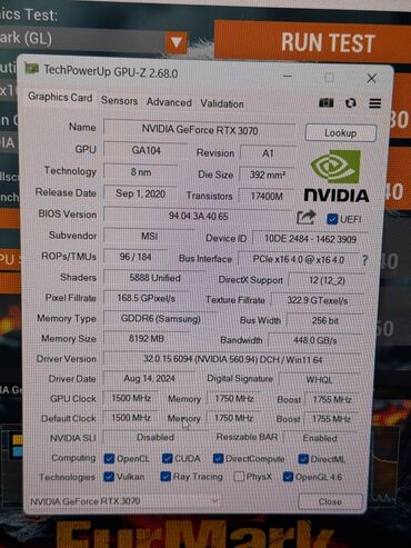 Видеокарта, Б/у, MSI, GeForce RTX, 8 ГБ, Для ПК