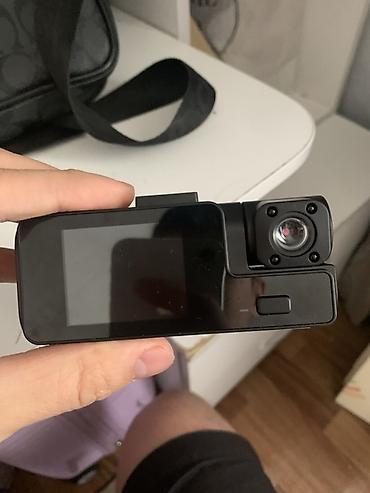 Компактный автомобильный видеорегистратор с поворотным объективом и встроенным дисплеем. Подходит для установки на лобовое стекло, питание от прикуривателя/USB.