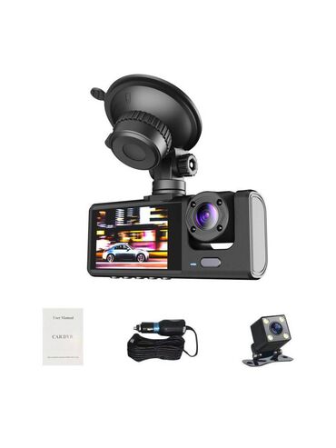 Угол обзора трех камер данного устройства 170°/90°/90°. Поддержка циклической записи и функции обнаружения движения. Карта памяти до 32 ГБ, входит в комплект.