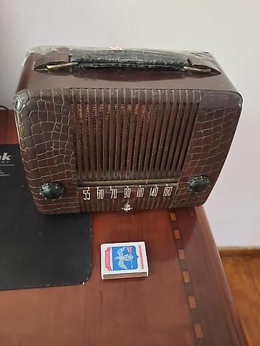 Старинное радио Emerson (США), в нерабочем состоянии. Отлично подойдет как антураж для кафе, ресторанов, дачи и т. д. Корпус с декоративной фактурой «под кожу», две боковые ручки управления, шкала с делениями в диапазоне AM, тканевая решетка динамика, переносная ручка сверху. Редкость: единственный экземпляр в Бишкеке.